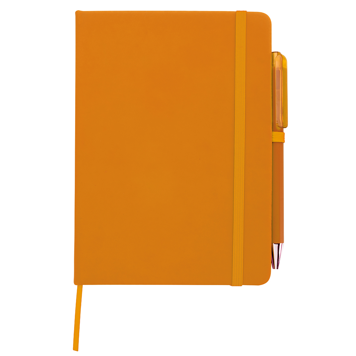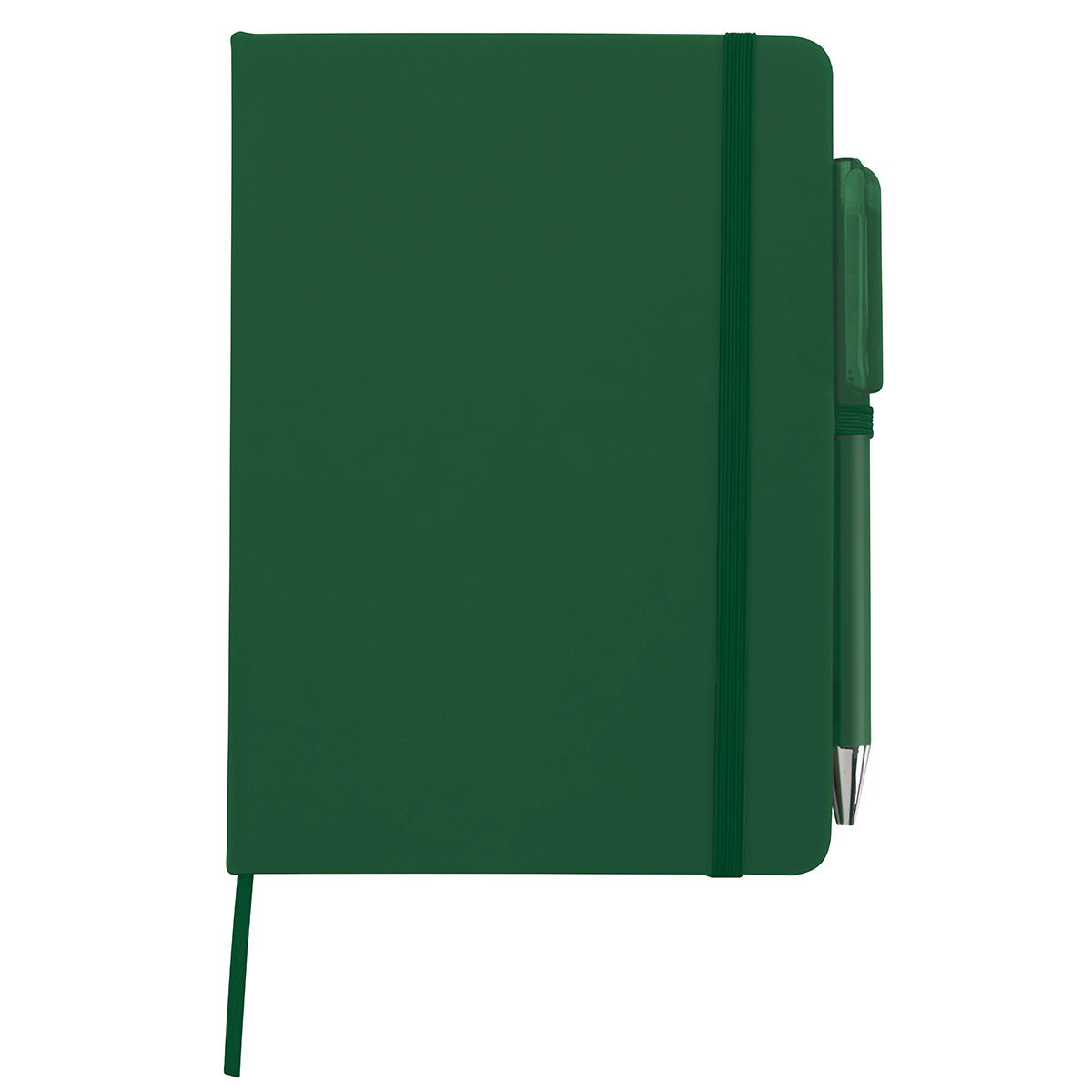 This 5 x 7 notebook/pen combo is great to throw in your bag when on the go. It features a leatherette cover and matching bookmark and elastic band closure. The FSC® label means that the materials used for this product come from well-managed FSC®-certified forests and other controlled sources. *One Color*